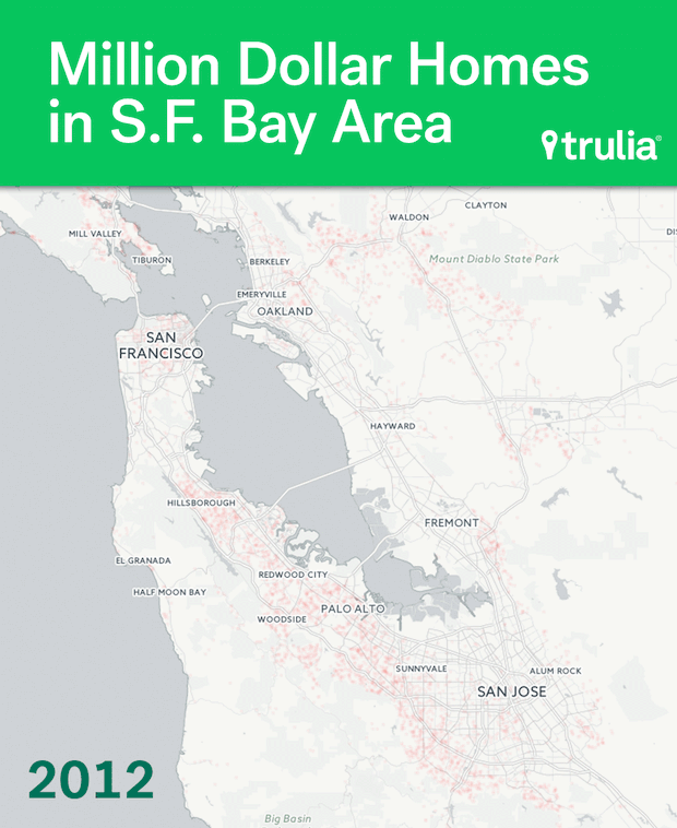 Trulia ha recopilado estos datos útilmente en una visualización que muestra al “uno por ciento” extendiéndose sobre la región de la bahía de San Francisco como si fuera un sarpullido.