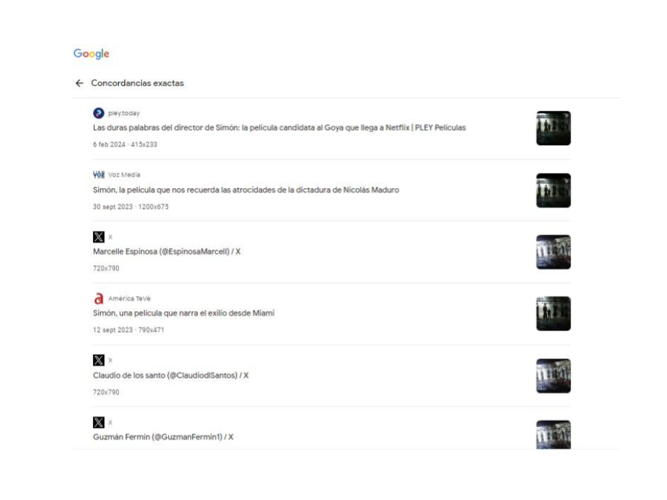 Una búsqueda inversa de imágenes en Google Lens nos llevó, en sus concordancias exactas, a las declaraciones del director venezolano Diego Vicentini, sobre su obra “Simón”, una película transmitida desde 2023 en plataformas como Netflix y Amazon Prime.