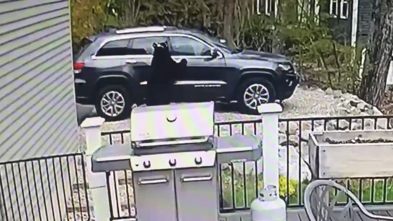 Una cámara de seguridad grabó el instante en que un oso abre la puerta del pasajero de una camioneta estacionada, al tiempo que su otro compañero penetraba por la puerta del chofer. Ambos curiosearon en el interior, pero al no encontrar nada interesante abandonaron el vehículo tranquilamente.