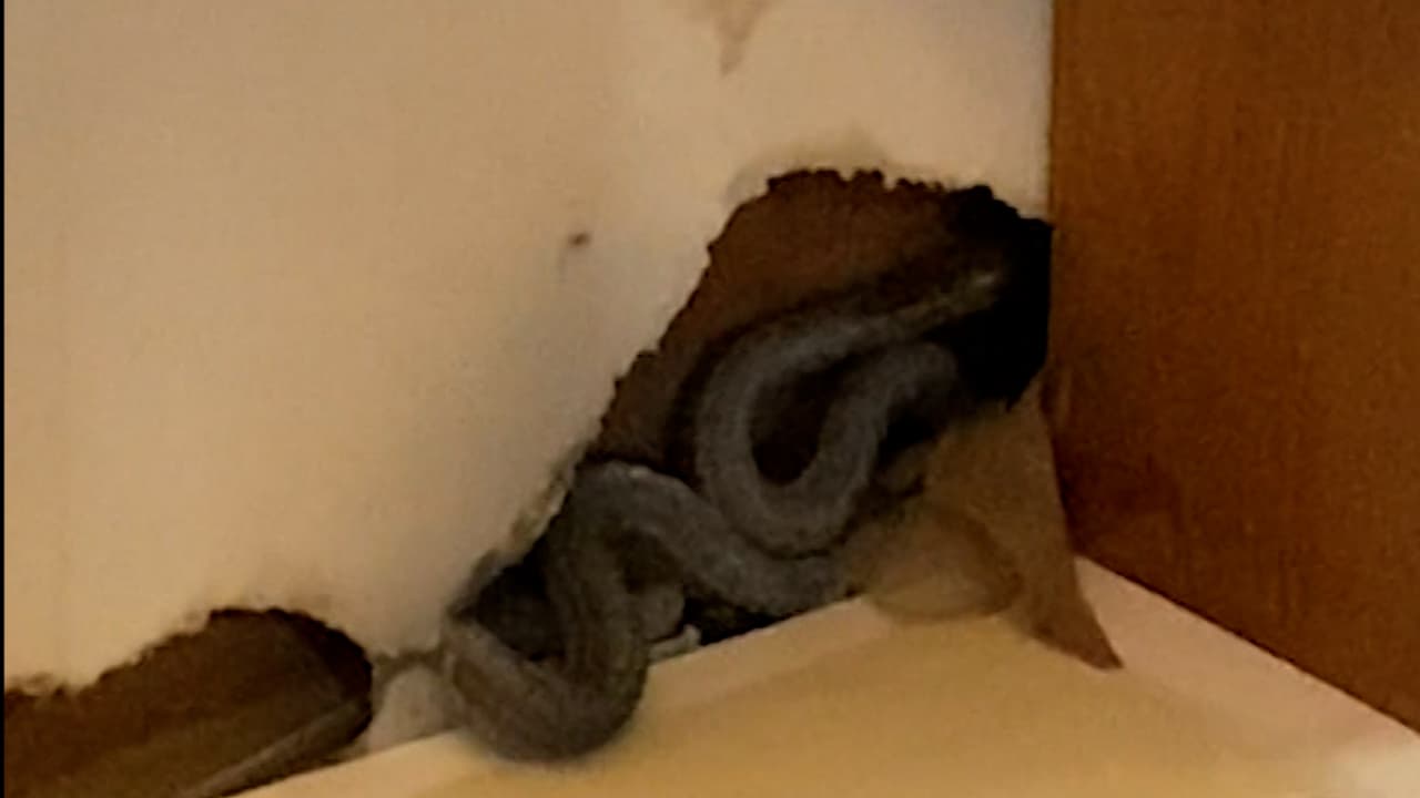 Amber Hall, de 42 años, compró su primera casa con mucho trabajo, pero cuando ella y sus dos hijos se mudaron hicieron un hallazgo que los dejó petrificados: un nido de serpientes se esconde detrás de las paredes.