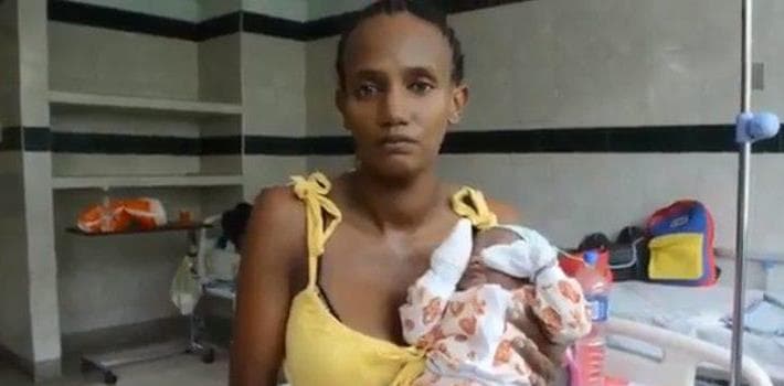 Mujer da a luz afuera del Hospital Central de Maracay en Venezuela