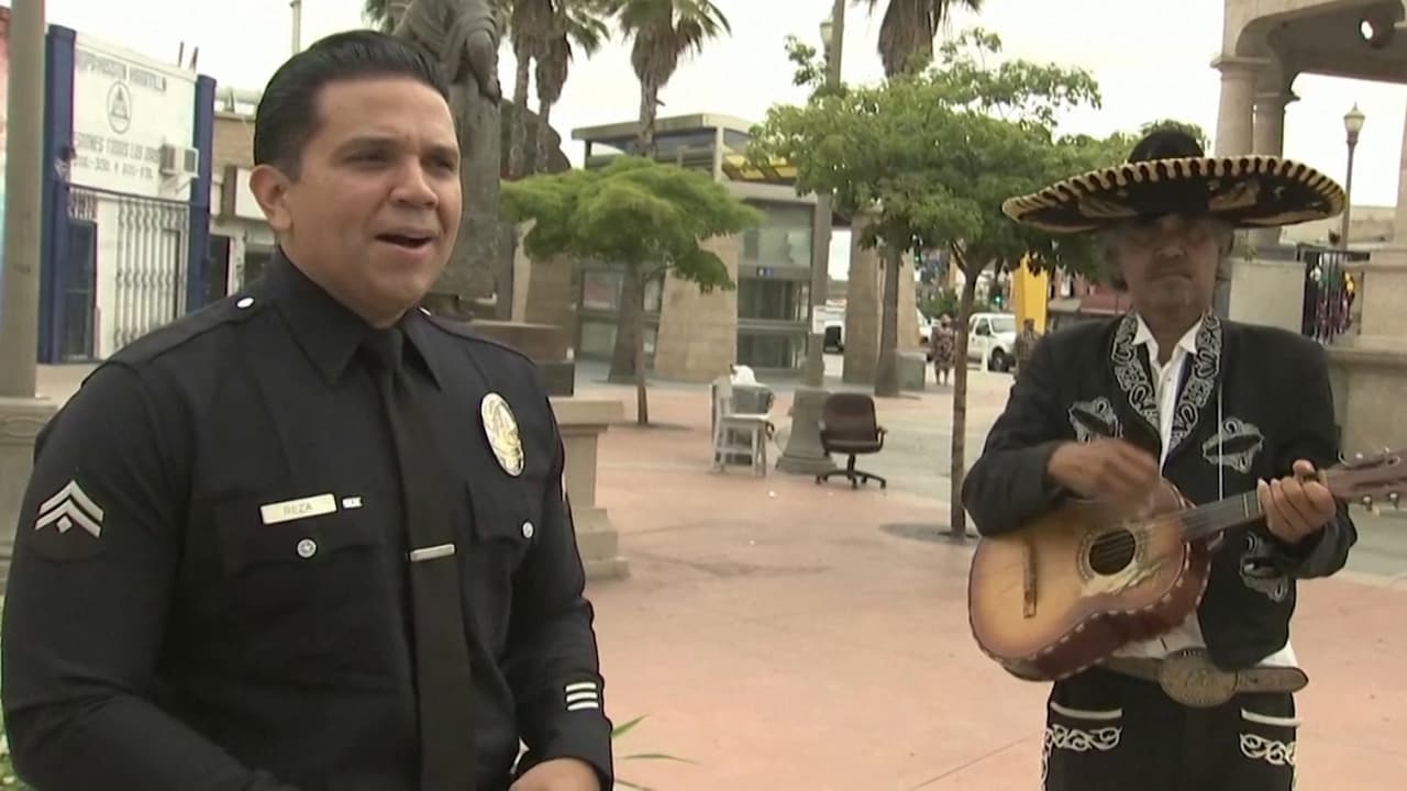 Con música de mariachi este policía trata de ganarse el corazón de su comunidad