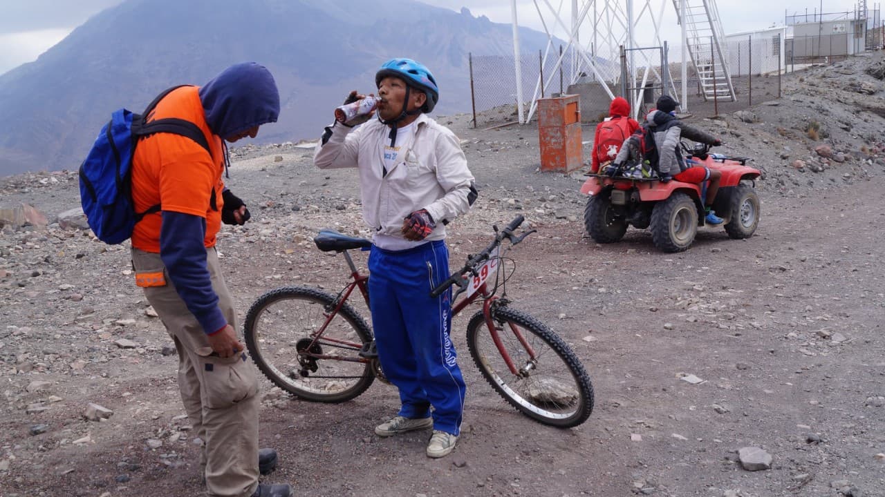Con una bici oxidada y a sus 57 años, este campesino llegó a la cima de un volcán de 4,600 metros de altura