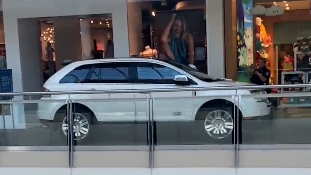 Cuando las puertas automáticas se abrieron, una mujer mayor ingresó con su automóvil al segundo piso de un centro comercial de Massachusetts. La conductora fue llevada a un hospital para evaluar su estado mental.