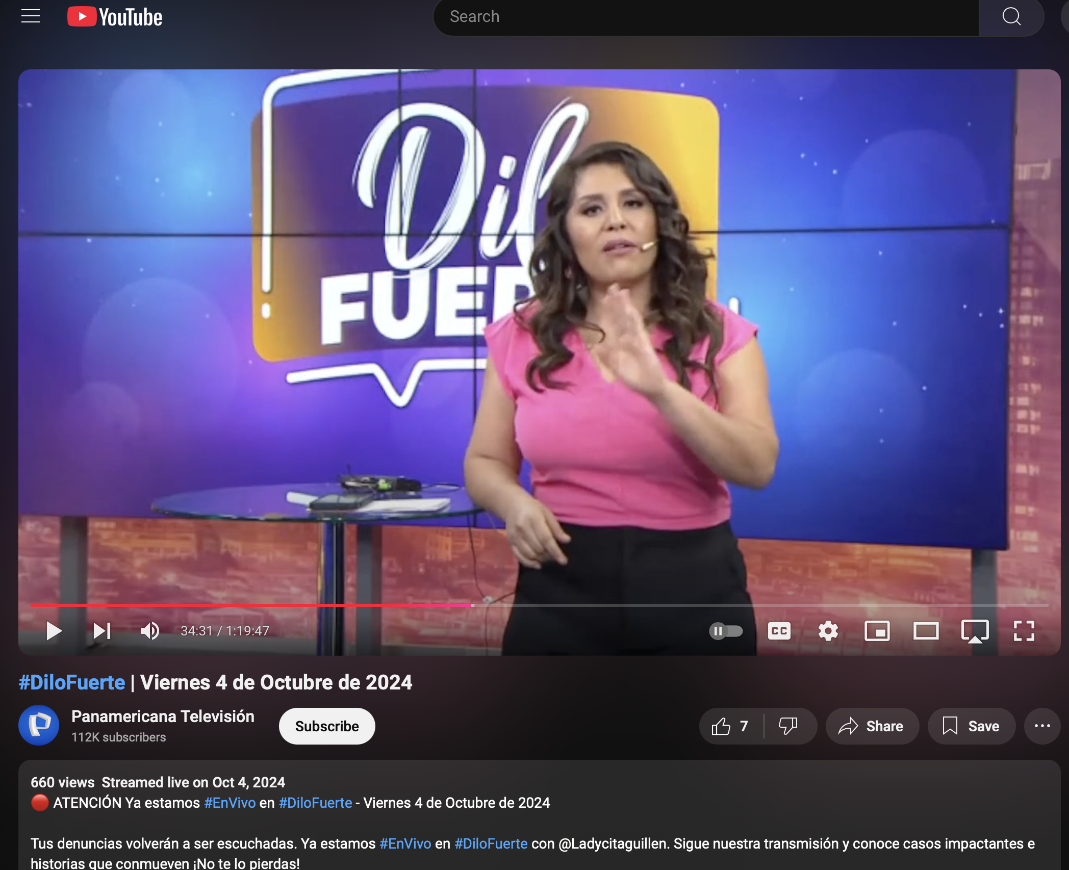 Revisamos la cuenta oficial de YouTube de Panamericana Televisión y localizamos el video original, fechado el 4 de octubre de 2024. Al revisarlo, confirmamos que, aunque la vestimenta de Guillén y el fondo son iguales, tanto el tono de voz como lo que se escucha en el audio es distinto. En el segmento televisivo, Guillén no menciona ningún programa ni presenta al otorrinolaringólogo Pérez Sánchez, como se afirma en el video difundido en Facebook de 27:24 minutos de duración. En realidad, aborda temas como la delincuencia en el país, un accidente automovilístico y cierra presentando a unos artistas.