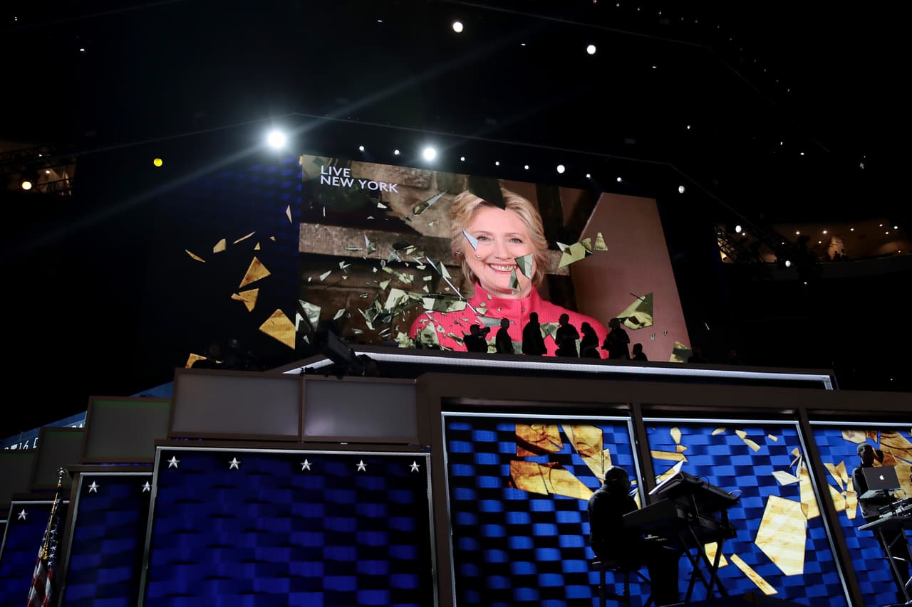 Al final de la jornada en la que fue elegida oficialmente como candidata del Partido Demócrata a la presidencia, Clinton apareció en un video para dar un breve mensaje a la convención. "No puedo creer que hemos hecho la grieta más grande en ese techo de cristal hasta ahora", dijo al agradecer su nominación.
