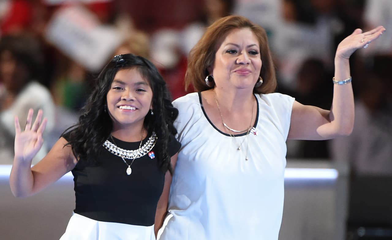 Karla, de 11 años, es hija de inmigrantes indocumentados. "No me siento valiente todos los días. Casi todos los días tengo miedo. Temo que en cualquier momento mis padres sean obligados a irse", dijo acompañada en el escenario por su madre, Francisca.