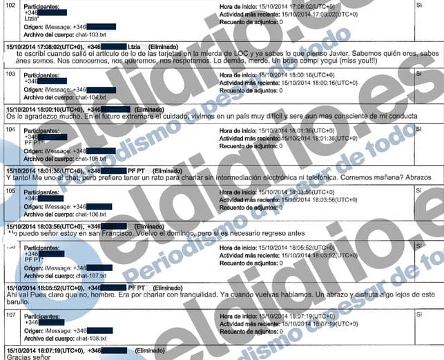 “Os lo agradezco mucho. En el futuro extremaré el cuidado, vivimos en un país muy difícil y sere aun más consciente de mi conducta”, fue la respuesta de López Madrid en el chat de Apple en el que realizaron la conversación.