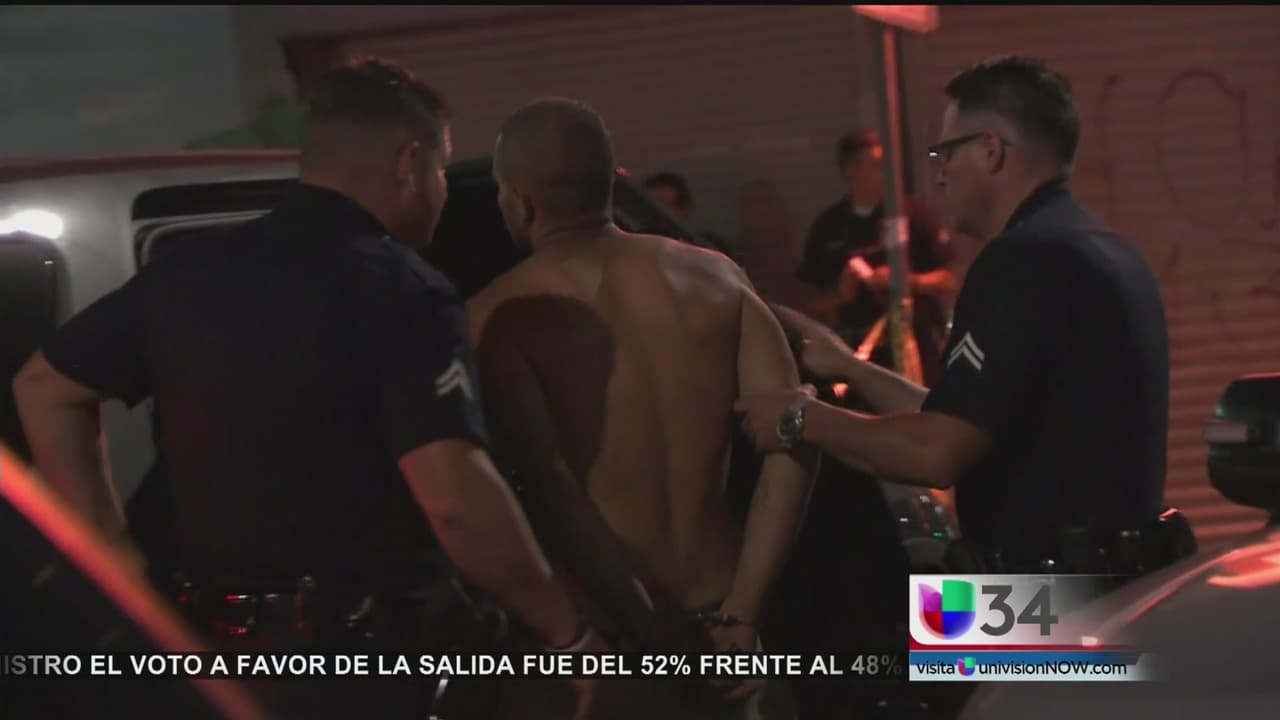 La Policía de Los Ángeles arrestó a dos sospechosos que habían cometido tres asaltos a mano armada. En uno de los atracos hirieron a una persona e intentaron darse a la fuga, pero fueron sorprendidos por más de 30 elementos de la corporación.