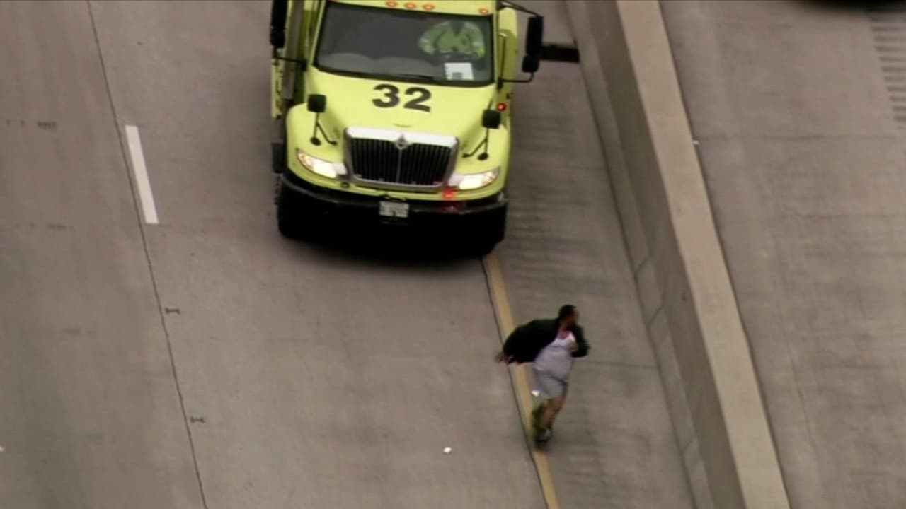 La policía de Chicago recibió llamadas sobre un hombre que corría por una autopista, después se ser capturado fue trasladado a a un hospital en ambulancia. tranco