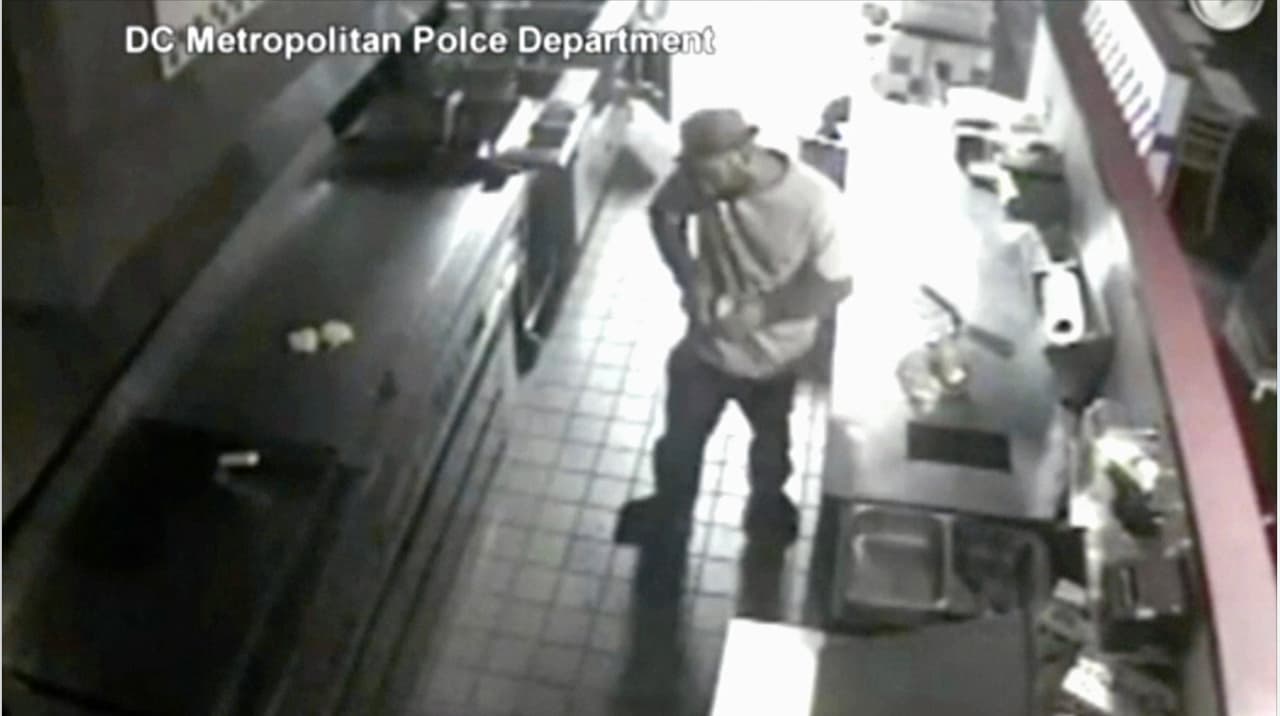 El Departamento de Policía Metropolitana en el Distrito de Columbia ha mostrado este video en donde se ve a un sujeto preparando comida mientras roba en el restaurante de hamburguesas Five Guys.