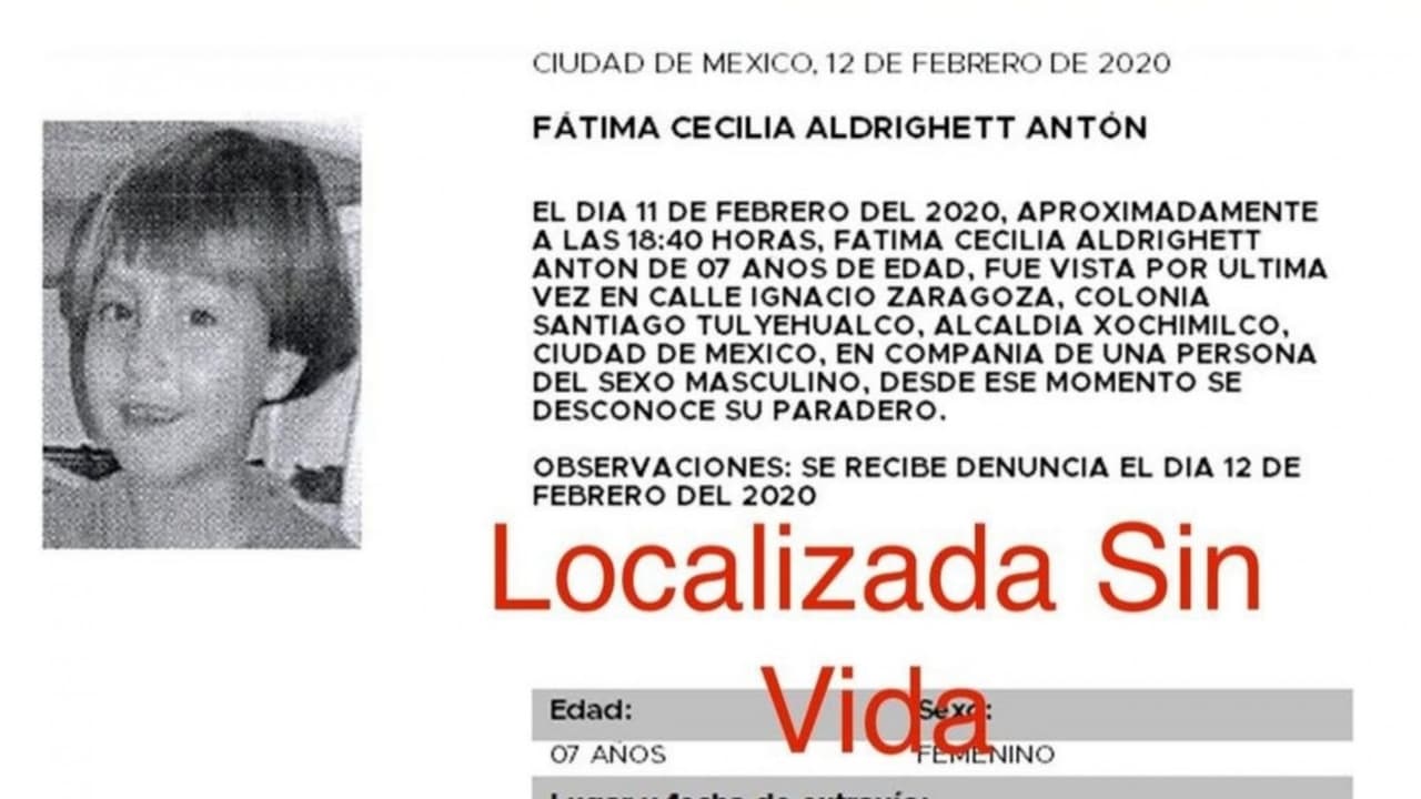 Los familiares denunciaron la desaparición y fue el 15 de febrero cuando el cuerpo de la pequeña fue encontrado en la alcaldía de Tláhuac, en el sur de la capital, dentro de una bolsa de plástico.