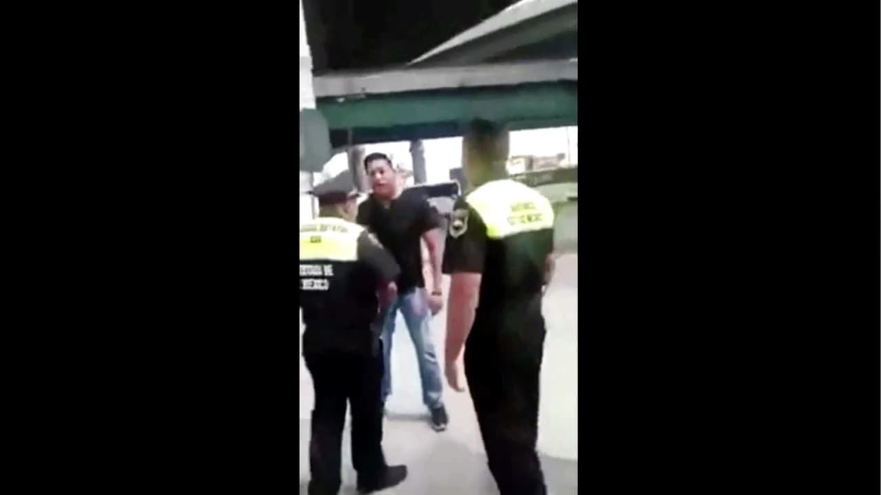 Se muestra a un oficial de la policía de tránsito de Edomex golpeando y posteriormente tratando de arrebatar la cámara que lo graba.