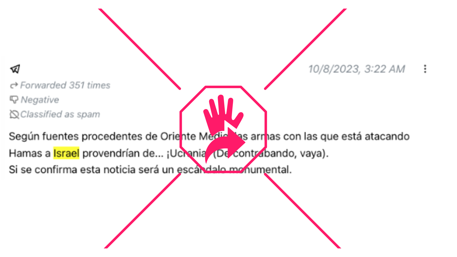 Desde el domingo 8 de octubre, monitoreo desde muy cerca centenares de grupos públicos de WhatsApp y Telegram. Son espacios en los que miles de personas se comunican en español y en portugués, y debaten las noticias referentes al nuevo capítulo del antiguo conflicto israelí-palestino. En ese universo, tres mensajes –dos de ellos viralizados en español y uno en portugués– me llamaron la atención porque son ejemplos claros de cómo en tiempos de pánico las apps de mensajería se vuelven espacios peligrosamente caóticos.
