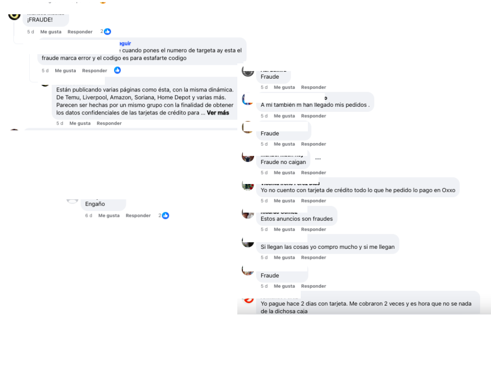 En elDetector notamos que los posts fueron compartidos desde cuentas de Facebook diferentes a un perfil verificado de Temu en esa red social, así como también que en los comentarios de las publicaciones varios usuarios advierten que se trata de un fraude.