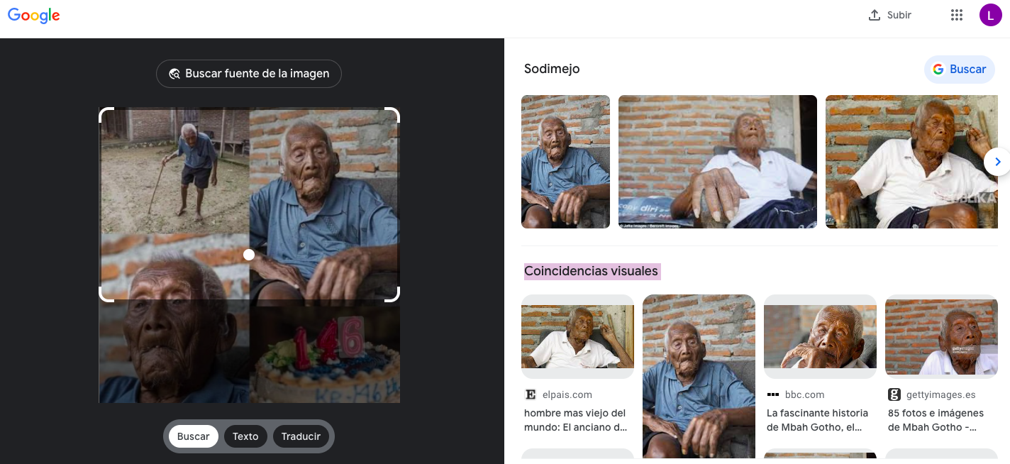 Mediante una búsqueda inversa de imagen en Google, en elDetector encontramos que el buscador identifica al anciano como Sodimejo, también conocido como Mbah Gotho. Además, entre los resultados hay notas de distintos medios del mundo que cuentan la historia de este hombre de Indonesia, de su supuesto cumpleaños número 146 y de su muerte unos meses después.