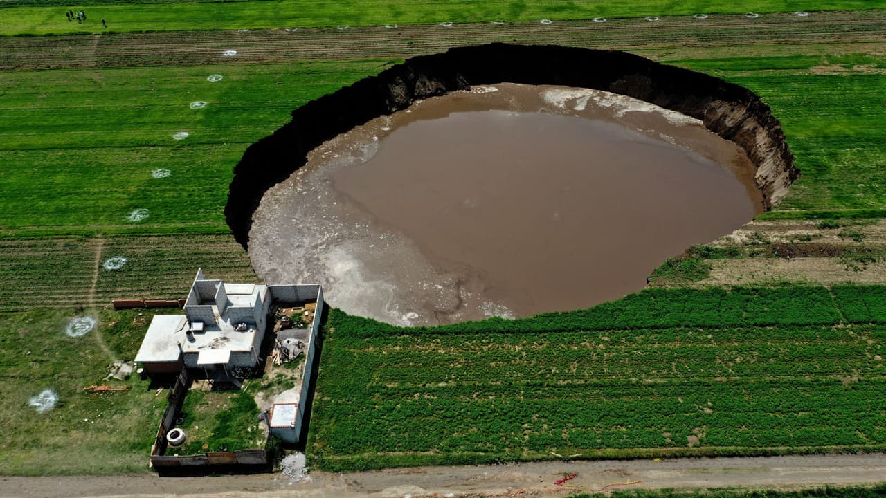 El socavón se formó el fin de semana pasado en una zona rural del estado de Puebla, México, y ha pasado de 15 a más de 300 pies de diámetro en menos de una semana.