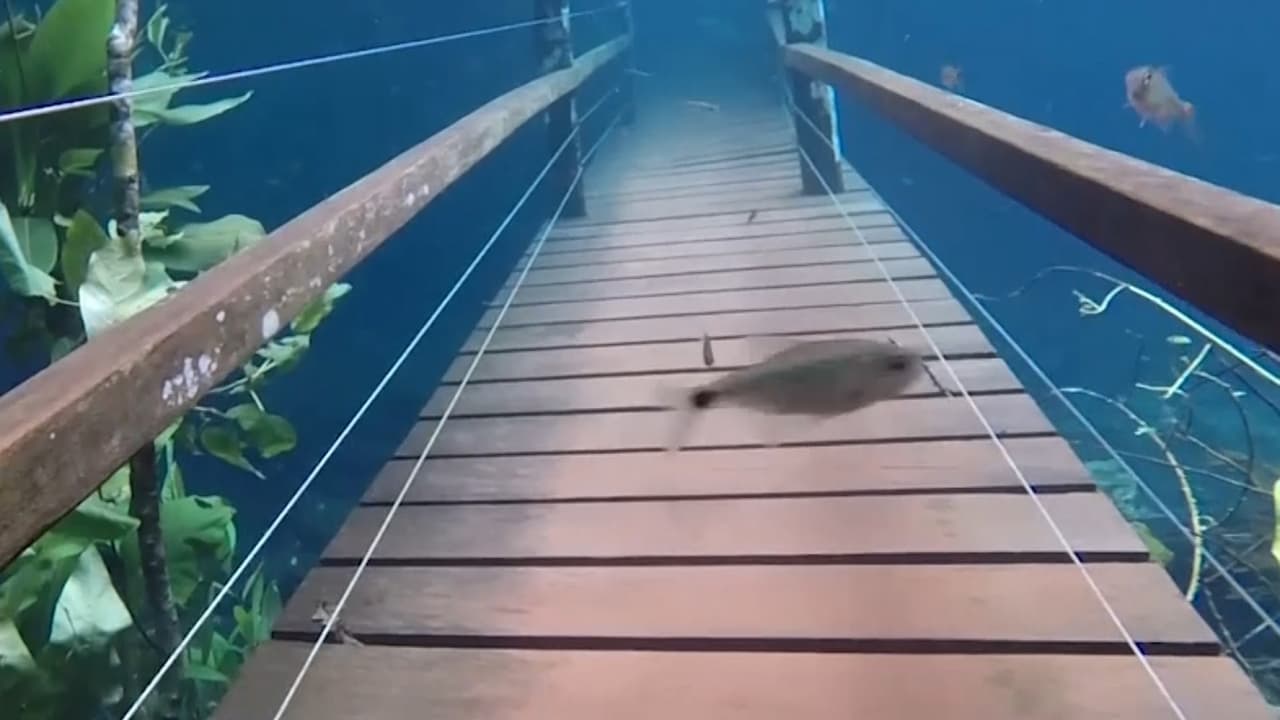 El nivel del agua del río que cruza la reserva Rio da Prata, en el estado brasileño de Mato Grosso do Sul, subió hasta diez pies tras fuertes lluvias. El sendero se convirtió momentáneamente en un lugar perfecto para bucear y observar la fauna.