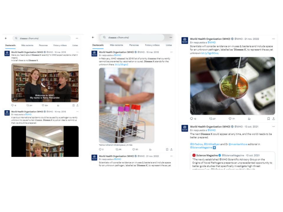 Comprobamos la falsedad revisando los comunicados de prensa y las explicaciones disponibles de la OMS sobre el concepto de la enfermedad X, así como mediante una búsqueda de palabras clave en Google y una búsqueda avanzada en X (antes Twitter) en la cuenta de la OMS.