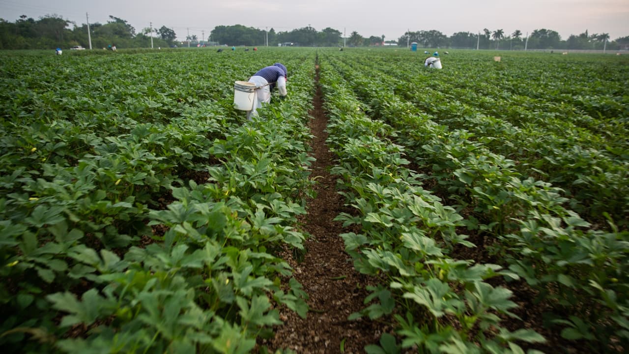 HOMESTEAD, Florida — It’s 6:00 a.m. and small lights glimmer like fireflies between rows of okra. Amidst narrow labyrinths, dozens of workers pick through the small bushes for vegetables that are perfectly ripe, at about 3 centimeters long. If another day passes, these crops will be impossible to sell.