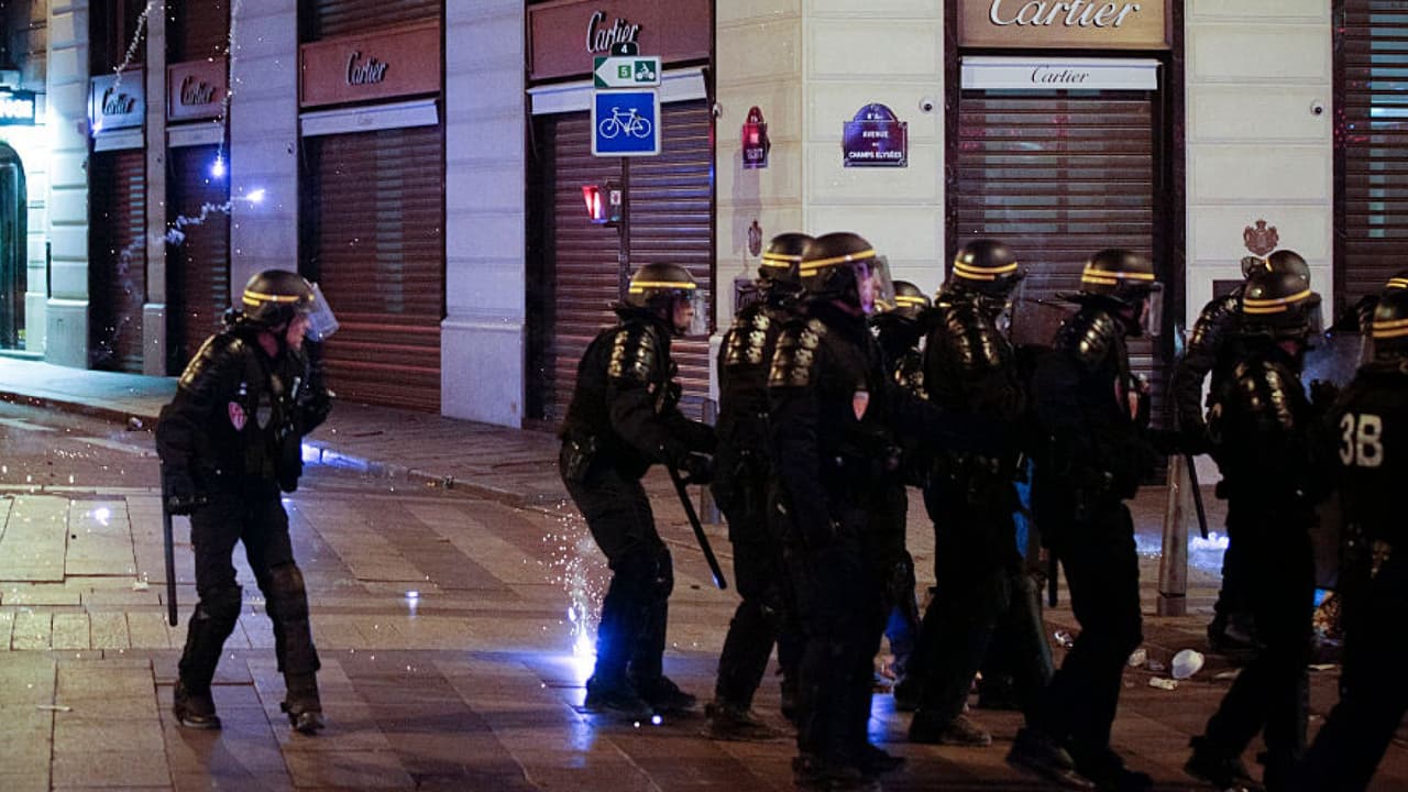 La policía antidisturbios respondió con gases lacrimógenos y cañones de agua a los fanáticos que se tornaron violentos.
