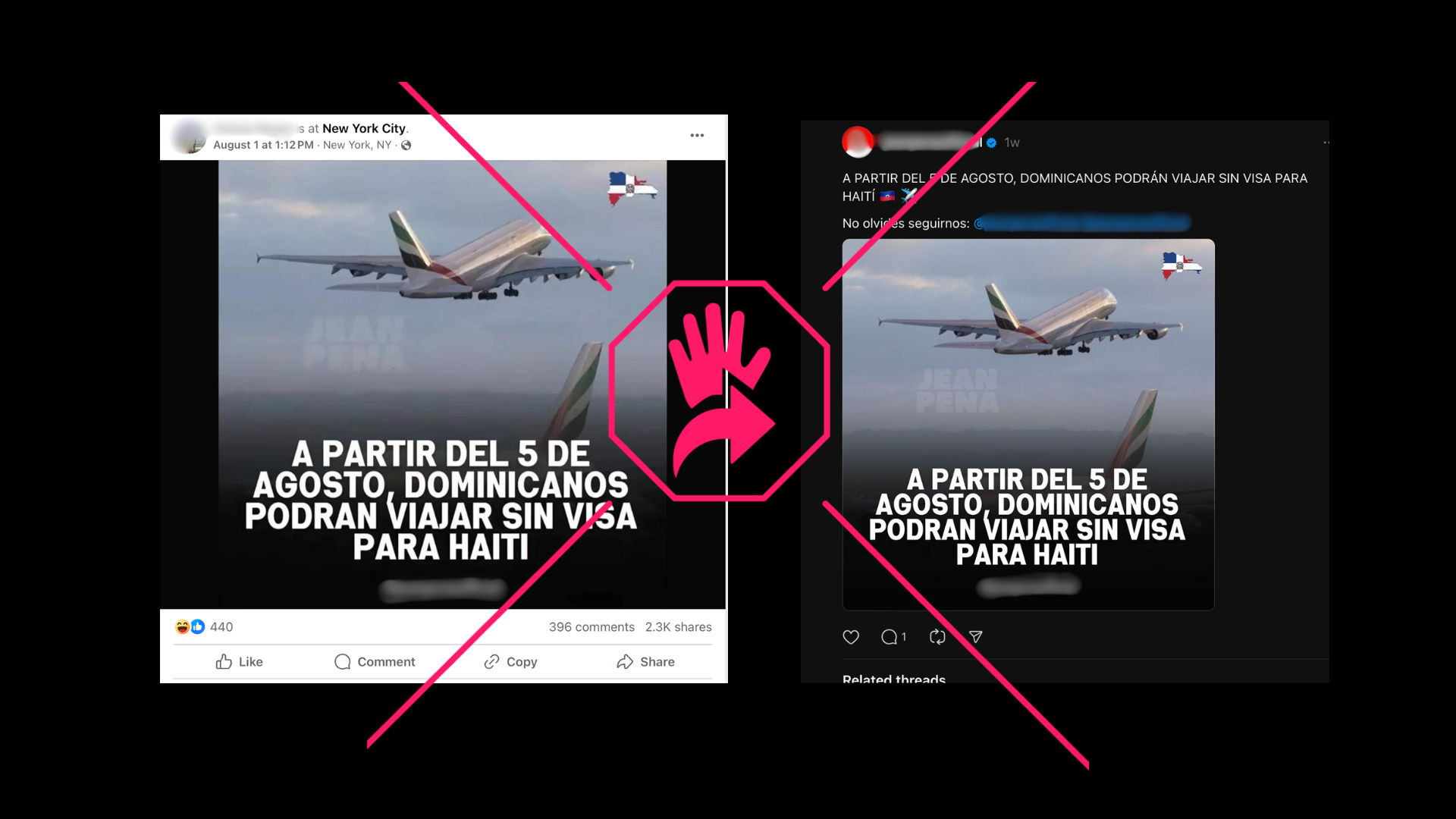 “A partir del 5 de agosto, los dominicanos podrán viajar sin visa a Haití”, afirma el post, compartido 2,300 veces desde su publicación el 1 de agosto de 2024. Este mismo mensaje también fue publicado en Threads.