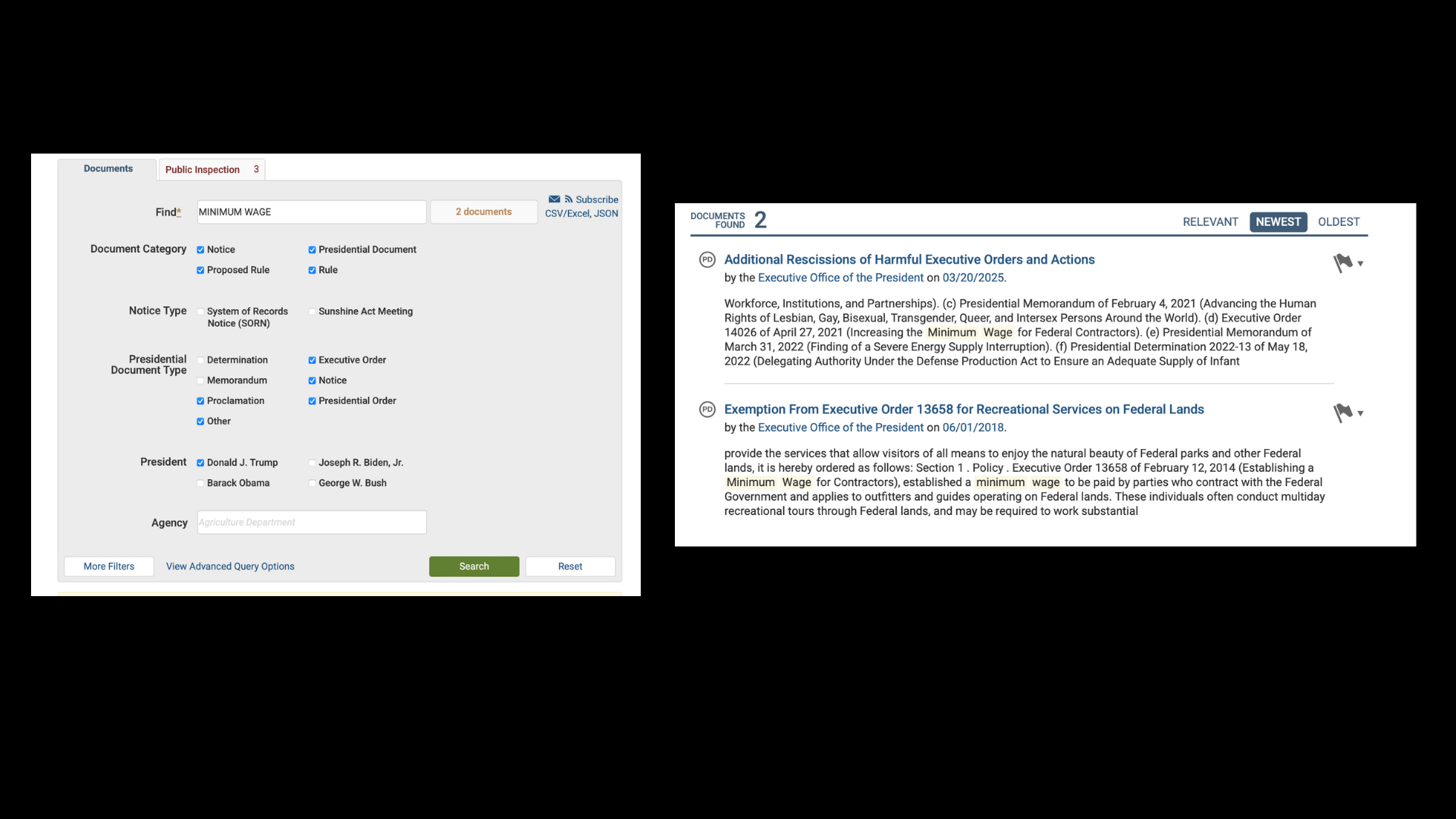 Desde elDetector realizamos una búsqueda en inglés con las palabras clave “salario mínimo” en el sitio oficial de la Casa Blanca. Entre los resultados, no encontramos ninguna orden ejecutiva ni declaración que respalde un supuesto aumento del salario mínimo a nivel federal.