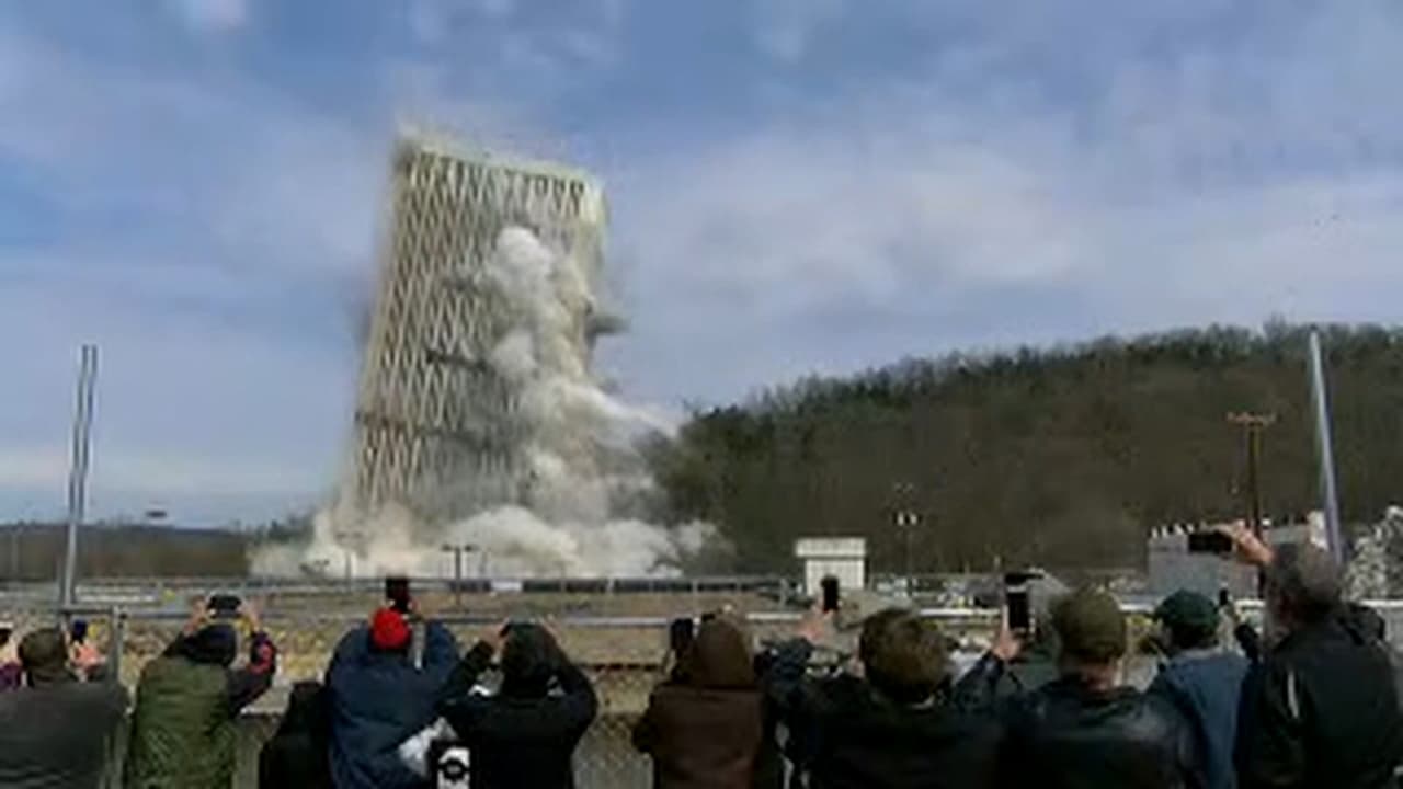 Dos explosiones controladas y la torre más alta de Kentucky dejó de existir