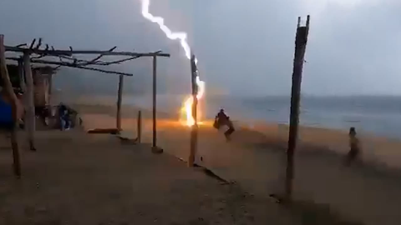 Dos personas, un hombre y una mujer, murieron tras ser alcanzadas por un rayo en una playa del estado de Michoacán, en el oeste de México. Más videos en Univision.