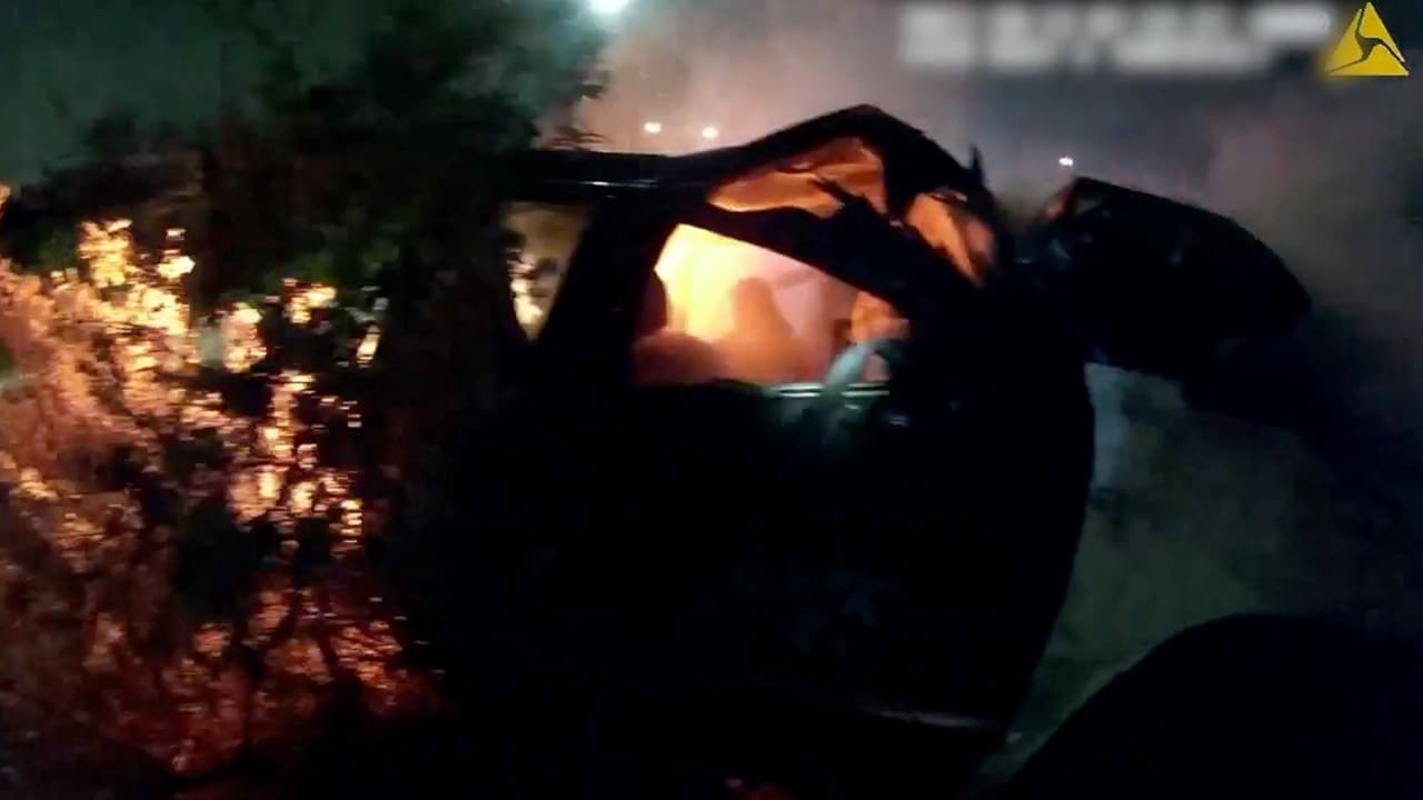 Dramáticas imágenes del rescate de un hombre tras el incendio de un auto en Texas