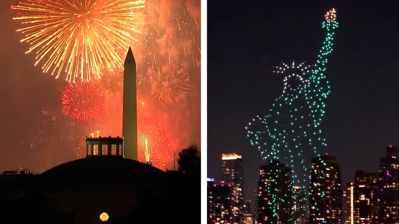La tradición de hacer espectáculo con fuegos artificiales cada 4 de julio es cada vez más cuestionada por los ambientalistas. Este año, cientos de drones que formaron figuras en el cielo sustituyeron a los fuegos artificiales en diferentes ciudades.