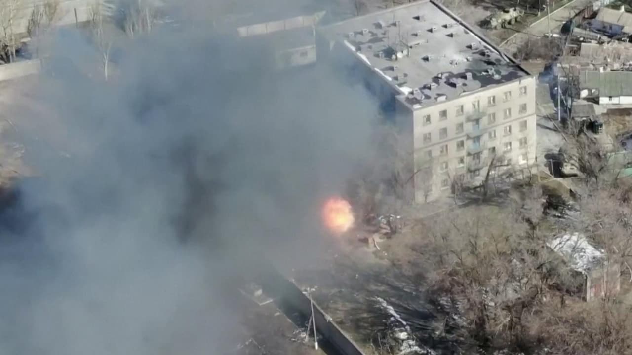Drones muestran la devastación de los bombardeos rusos y la respuesta de fuerzas ucranianas en Mariupol
