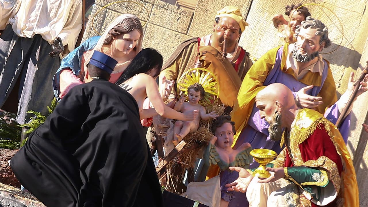 Una activista del grupo feminista Femen, con el torso desnudo, intentó agarrar este lunes la figura del Niño Jesús en el pesebre navideño de la Plaza de San Pedro del Vaticano, pero la policía se lo impidió. El incidente ocurrió unas dos horas antes de que el papa Francisco diera su tradicional mensaje navideño.