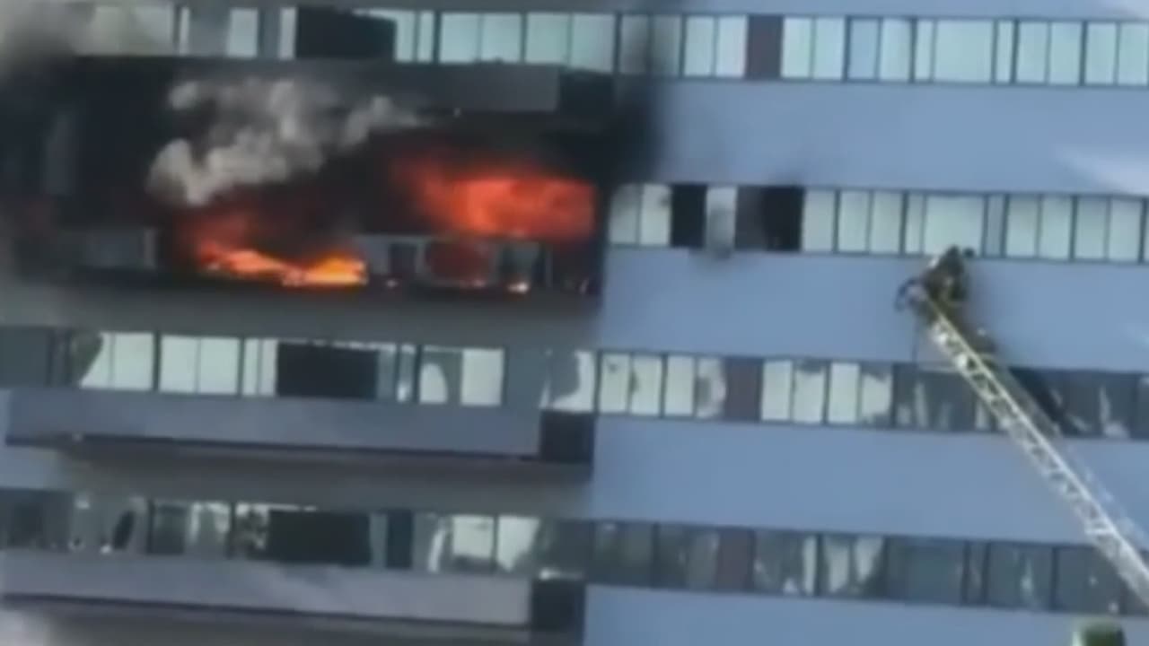 Según los bomberos, el fuego se reportó en el sexto piso y al menos dos residentes fueron rescatados haciendo uso de enormes escaleras. Incluso, se vio a una persona caminando por una cornisa.
