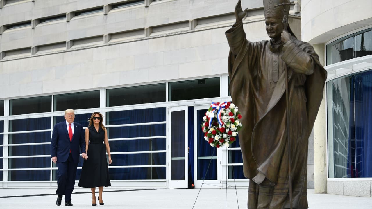 La Arquidiócesis de Washington mostró su oposición a la presencia del presidente Donald Trump y la primera dama en el santuario católico, argumentando que "Juan Pablo II era un defensor de los derechos y la dignidad humana" y que él hubiera condenado esta visita.