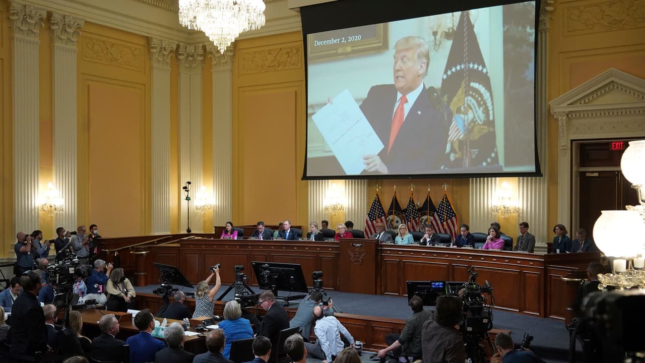 Este lunes es la segunda audiencia pública del comité que investiga el asalto al Capitolio. El esperado testimonio del exjefe de campaña de Trump, Bill Stepien, fue cancelado a última hora por una emergencia familiar, aunque estuvo representado por sus abogados. El grupo se enfoca en la evidencia que dice tener para que se considere una acusación criminal contra el expresidente Donald Trump.