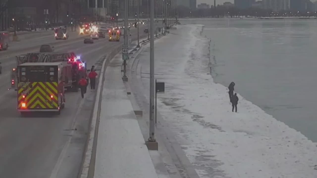 Un hombre que caminaba al borde del Lago Michigan se percató de que alguien había caído a las gélidas aguas e intentó pedir ayuda, hasta que dos agentes del SWAT se acercaron y lo rescataron. El hombre se recupera en el hospital.