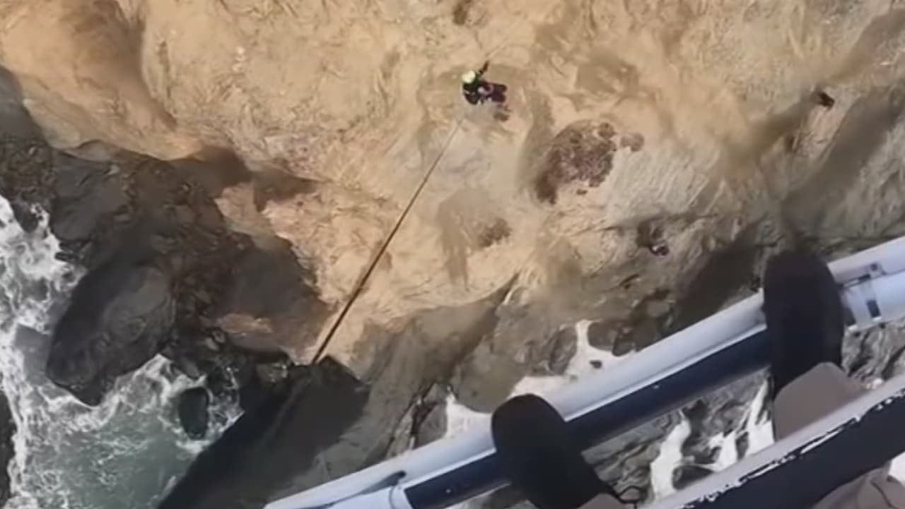 Un hombre pasó momentos de pánico cuando quedó colgado de un acantilado en San Francisco, California, pero fue rescatado por un miembro de la patrulla de carreteras. A bordo de un helicóptero, el agente logró ponerlo en tierra firme y ninguna persona salió lesionada.