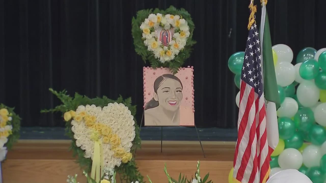 La ceremonia en la escuela Cesar Chávez de Houston es el inicio de la despedida de la soldado hispana que perdió la vida brutalmente a manos de otro soldado en la base militar Fort Hood, en Texas. Ver más de esta noticia.