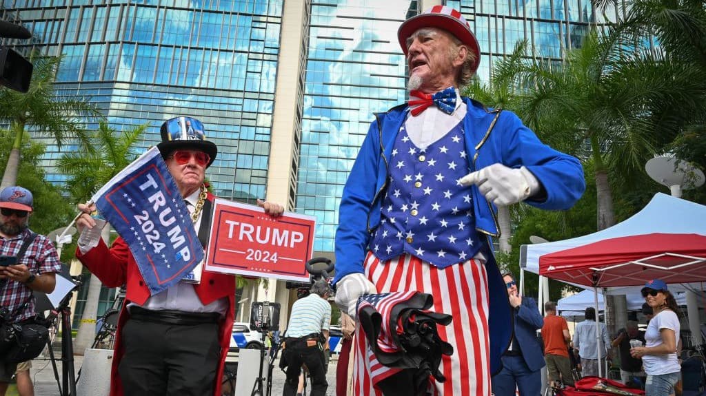 Decenas de manifestantes, en su mayoría simpatizantes del expresidente Donald Trump, han comenzado a agruparse en las afueras de la corte federal en Miami para mostrarle su apoyo al exmandatario antes del inicio del juicio donde se le presentarán 37 cargos por el manejo de documentos clasificados.