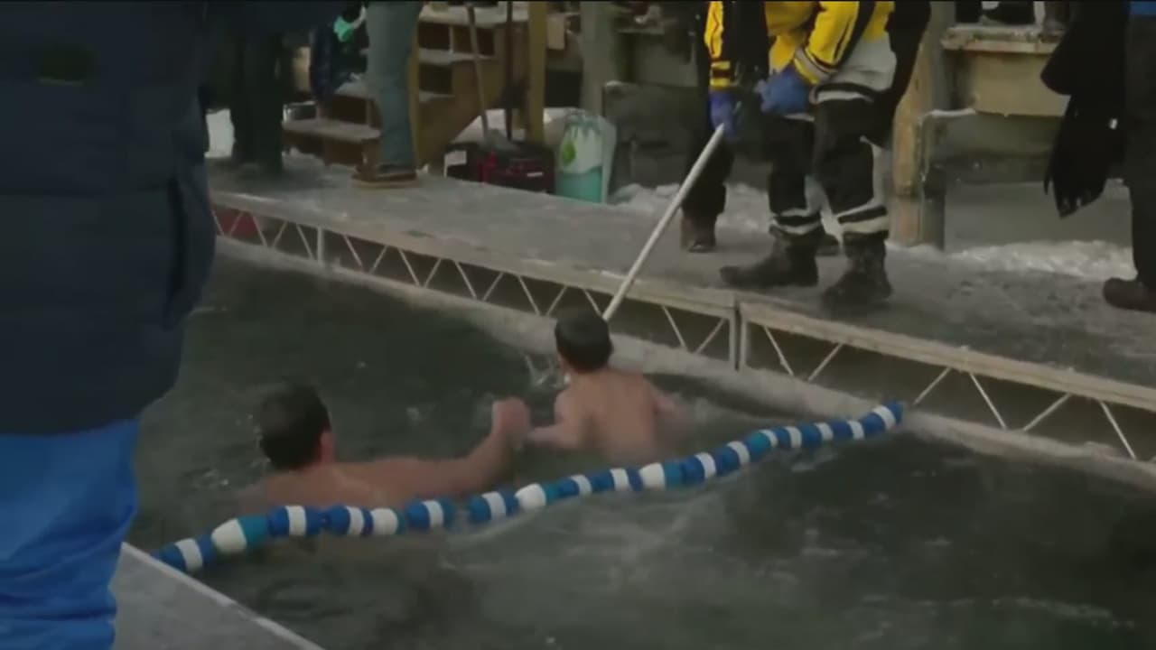 Con un 'chapuzón helado' en Minnesota, hombres y mujeres se disfrazan y se lanzan al agua para recibir el 2019