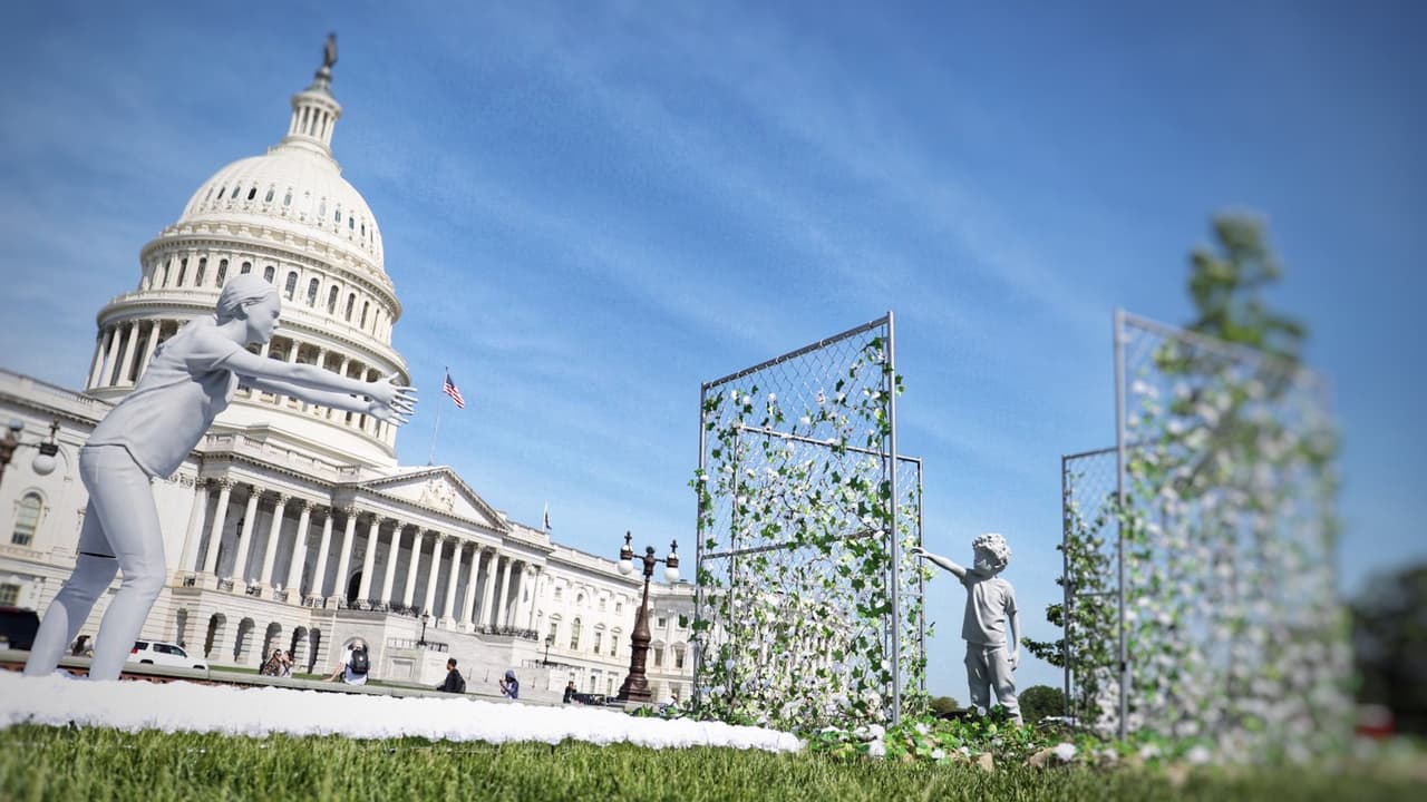 Paola Mendoza es artista y activista. Ella creó esta obra, ubicada frente al Capitolio, y que simboliza un niño separado de su madre como parte de la 'política de tolerancia cero' de Trump.