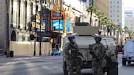 Efectivos con armas largas y calles bloqueadas por vehículos militares: así se ve el famoso boulevard de Hollywood
