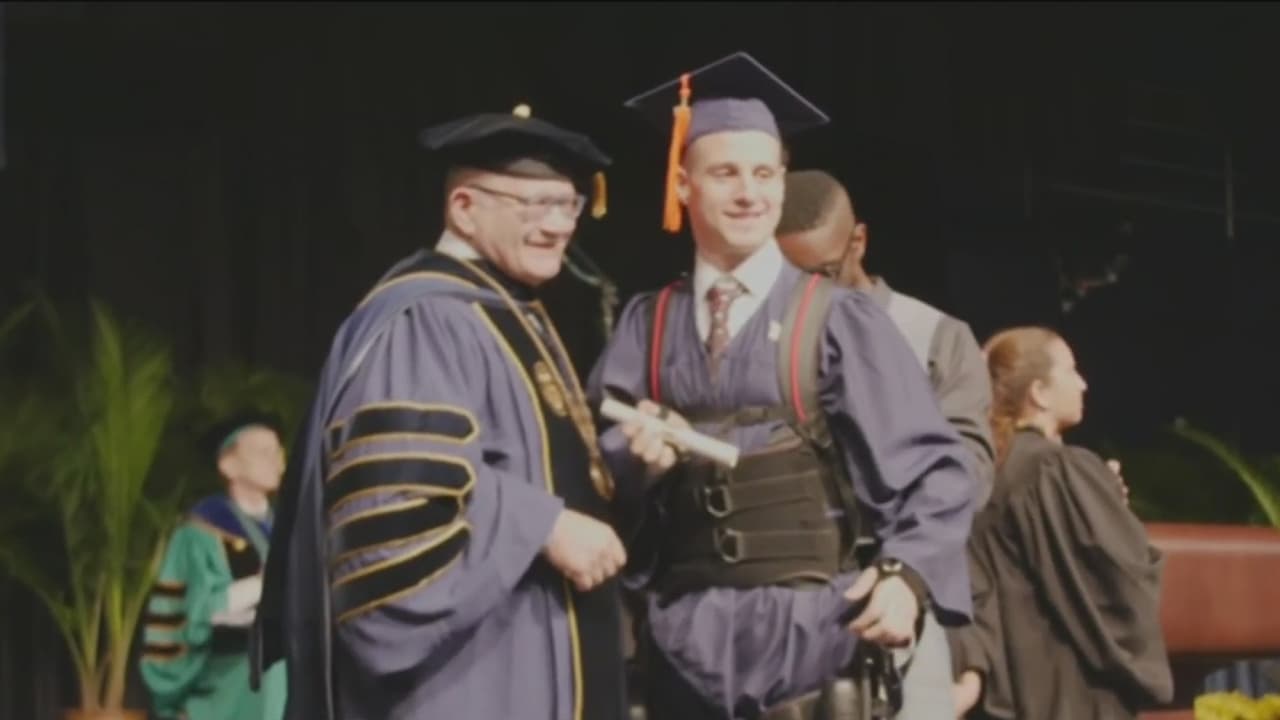 Aldo Amenta fue confinado a una silla de ruedas tras un accidente en 2015, pero gracias a su determinación y a un sofisticado equipo pudo graduarse caminando