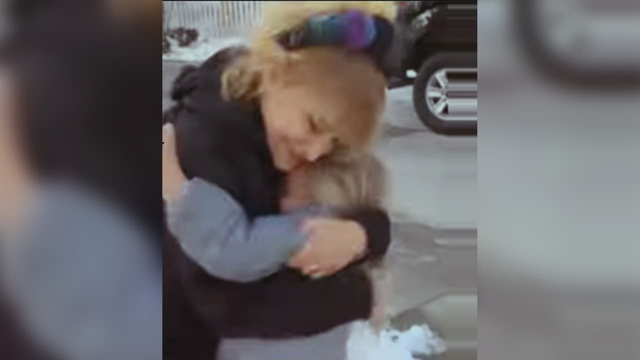 El emotivo momento en que una niña ve cumplido su sueño de Navidad: abrazar a su abuela