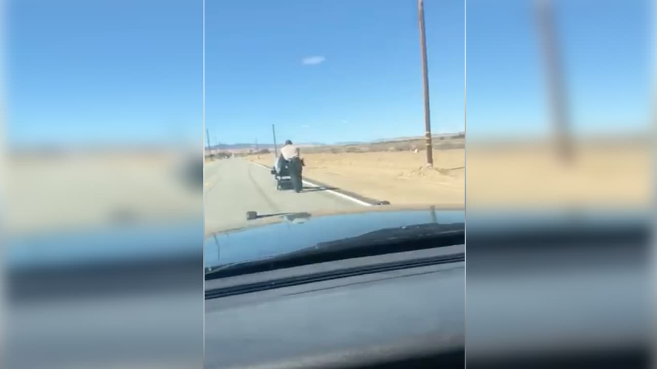 El oficial vio a una anciana en silla de ruedas en plena carretera y se bajó para montarla en la patrulla, pero como la silla era muy pesada no dudó en empujarla durante una milla hasta su casa.