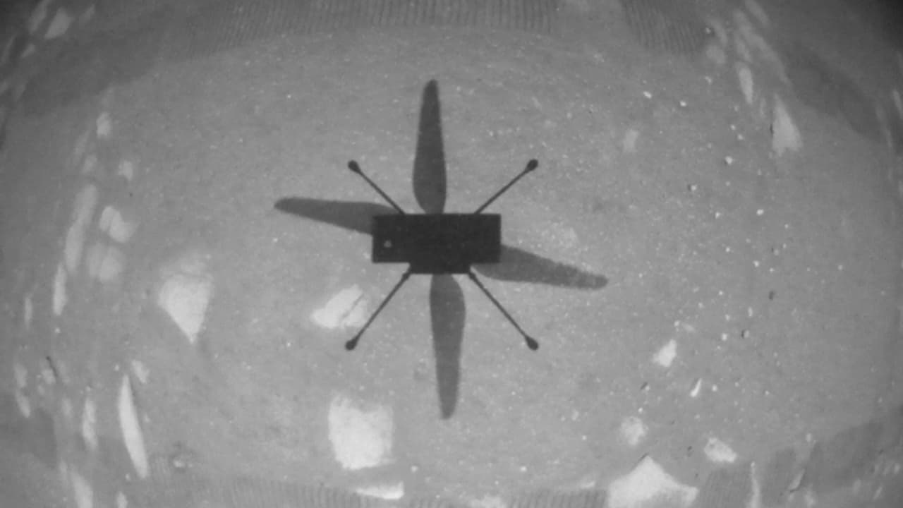 Los ingenieros de la NASA confirmaron que el helicóptero Ingenuity consiguió despegar, mantenerse en el aire y aterrizar en el cráter Jezero de Marte. El planeta rojo tiene menos gravedad que la Tierra, por lo que el vuelo tendría dificultades adicionales. En el tuit donde se informó sobre el hito se lee: “Histórico ascenso. Aquí está el punto de vista del #marshelicopter durante el primer vuelo. Esa es su sombra en el suelo".