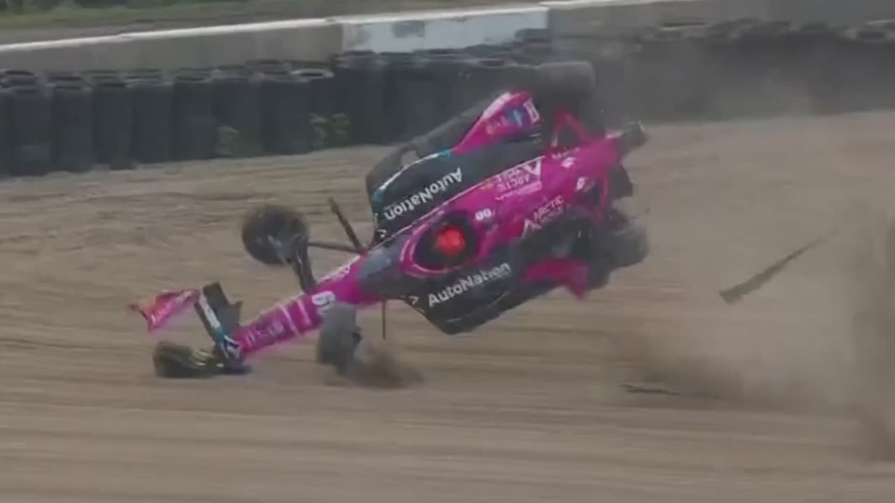 Un aparatoso accidente ocurrió durante una de las prácticas de la Indycar en el circuito de Mid-Ohio. El choque ocurrió cuando el auto del piloto francés Simon Page-Naud se quedó sin frenos y perdió el control por completo.