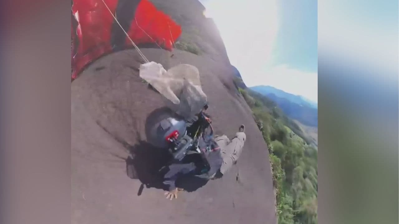 Un paracaidista brasileño vivió el peor susto de su vida luego de que su paracaídas fallara tras lanzarse desde un acantilado a casi 3,000 pies de altura. Un video muestra el momento en que su equipo se enreda y lo arrastra contra una roca. El deportista fue rescatado por los bomberos, pero sufrió varias lesiones.