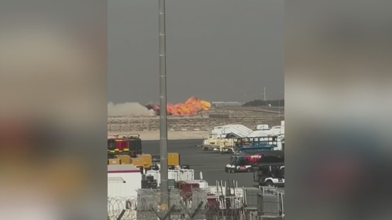 Un avión de combate de la Fuerza Aérea de India se estrelló durante una exhibición aérea en el Aeropuerto Internacional de Dubái, causando la muerte del piloto. El fuerte impacto provocó una gran bola de fuego.